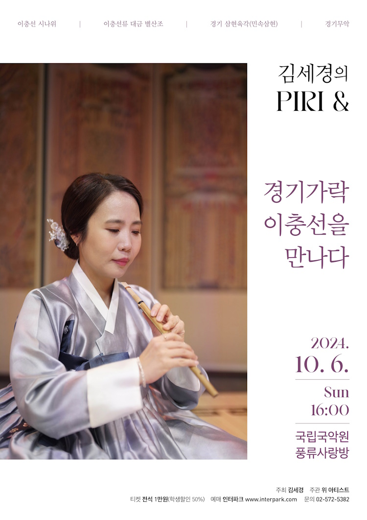 1. 공연명 : 김세경의 PIRI & 경기가락 이충선을 만나다