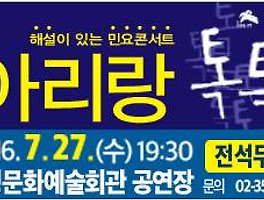| 7월 27일(수) 서울 은평문화예술회관에서 아리수 민요콘서트 '아리랑 톡톡' (0) | 2016.07.21 |