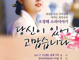 | 앙상블 시나위 출연,오정해 소리이야기 7월 13일 영주문화예술회관에서 공연 (0) | 2013.07.09 |