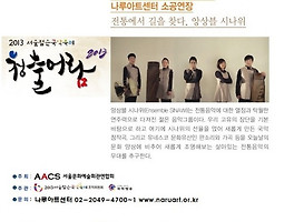 | 2013 서울젊은국악축제 '앙상블시나위' 10월 15일 나루아트센터에서 공연 (0) | 2013.10.12 |