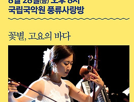 Soloist/꽃별 (10) 썸네일형 리스트형 2015 풍류사랑방 기획공연, 8월 28일(金) 국립국악원 '풍류사랑방' 해금연주가 꽃별 '고요의 바다' 많은 시간을 들여 만든 자료이오니, 퍼 가실때는 출처와 함께 링크를 해주시면 감사하겠습니다. 1. 공연명 : 2015 풍류사랑방 기획공연 - 꽃별 '고요의 바다' 2. 장소 : 서울 서초동 국립국악원 '풍류사랑방' ▶ 지도보기 3. 날짜 : 2015년 8월 28일 (금요일) 4. 시간 : 오후 8시 5. 티켓료 : 전석 20,000원 6. 문의 : 580-3300 7. 공연정보 더보기 ▶ http://me2.do/xukCHl6c ◆ 출연진 : 꽃별, 조용욱, 이명훈 등 지금 보신 국악정보가 도움이 되셨으면 아래 공감 ♥ 버튼을 눌러 주세요^^ 10월 26일(土) 대한민국역사박물관 옥상정원에서 즐기는 '꽃별 밴드'의 해금 연주 1. 공연명 : [토요문화광장] 옥상정원에서 즐기는 '꽃별 밴드'의 해금 연주2. 장소 : 대한민국역사박물관 (서울시 종로구 세종대로 198번지)3. 날짜 : 2013년 10월 26일 (토) 4. 시간 : 오후 4시 ~ 5시5. 티켓료 : 무료 공연6. 문의 : 02-3703-92567. 공연정보 더보기 ▶ www.much.go.kr (새소식 참조)▶ [프로필] 해금연주가 '꽃별' [해금연주 동영상] 비 그치는 소리 - 꽃별 (작곡: 윤현종) ▶ [프로필] 해금연주가 '꽃별' [해금연주 동영상] 운무(雲霧) - 꽃별 (작곡: 꽃별) ▶ [프로필] 해금연주가 '꽃별' [해금연주 동영상] The Road to Sidh - 해금솔리스트 꽃별 ▶ [프로필] 해금연주가 '꽃별' [해금연주 동영상] 소나무 그늘 - 꽃별 (작곡: 꽃별) ▶ [프로필] 해금연주가 '꽃별' [공연정보] 4월 2일 예술의전당에서 해금 꽃별과 국립국악관현악단 공연 서울1. 공연명 : 교향악축제-국립국악관현악단 2. 장소 : 예술의전당 콘서트홀 ▶ 공연장 지도보기 3. 날짜 : 2013년 4월 2일 (화요일) 4. 시간 : 오후 8시 5. 문의 : 02-580-1300 6. 관람료 : R석 3만원 , S석 2만원 , A석 1만원 ▶ 관련정보 더보기 ▶ [프로필] 해금연주가 '꽃별' [동영상] Feeling home - 해금 꽃별, 양방언, 츠치야레이코, 스즈키히데요시, 장재효 ▶ [프로필] 해금연주가 '꽃별' 여우락 콘서트 합동연주 해금솔리스트 꽃별 3집 음반「Fly Fly Fly」에 수록된 곡으로 집(고향)에 대한 아련한 느낌을 특유의 서정적이고 아름다운 선율로 담아낸 곡이다. [해금연주 동영상] 추노 OST 비익연리 - 해금 꽃별 ▶ [프로필] 해금연주가 '꽃별' 대명리조트, 꽃별 밴드와 문화나눔프로젝트 ‘夢(몽)’ 순회 공연 (11월 2~23일) 대명리조트(www.daemyungresort.com)는 11월 2일(금) 저녁 8시 경주리조트 공연을 시작으로 11월 23일(금)까지 약 한달 간 전국 사업장에서 대명문화나눔프로젝트 여덟 번째 나눔 '夢(몽)' 순회 공연을 연다. 이번 공연에는 국악의 세계화를 위하여 다양한 장르와의 크로스오버를 선보여 온 해금연주자 '꽃별 밴드'가 함께 한다. 11월 9일(금) 델피노 골프 앤 리조트, 23일(금) 변산리조트서 순회공연이 이어지며 대명문화나눔 프로젝트로 기획된 이번 공연은 지역민, 고객 등 누구나 무료로 관람 가능하다. ▶ [프로필] 해금연주가 '꽃별' 해금연주자 꽃별은 일본에서 데뷔 이후 10여 년간 5개의 앨범과 3번의 단독 콘서트로 대중과의 소통을 유지해왔다. 또 각종 CF 배경음악과 드라마 '추노.. 이전 1 다음